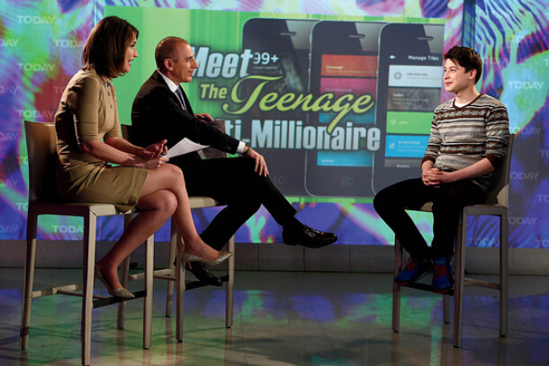 当你听说今年3月份,一个17岁的学生把自己设计的一款软件以3,000万美元卖给雅虎公司(Yahoo! Inc., YHOO)的时候。对于这孩子的形貌,你脑海里或许已勾画出一个搞笑的形象了吧:不用说,肯定是个极客。一个除了一行一行写代码之外对什么也不感兴趣的学霸。一个不敢正眼瞧人还老小声儿嘀咕着什么的神经质。