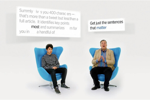 达洛伊西奥与演员弗莱──Summly的一位投资者──在该应用的广告中。
